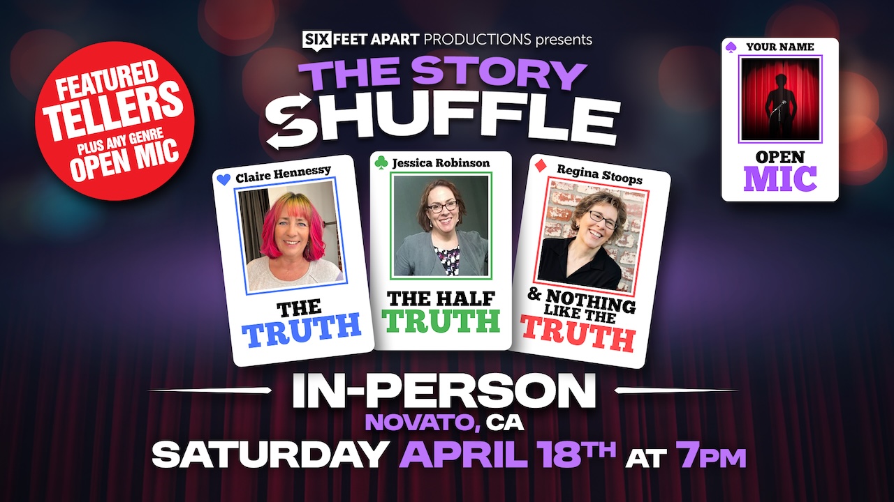 Six Feet Apart Productions was born out of the never-ending need to entertain and be entertained. Armed only with a Zoom account, a sketchy internet connection, and the combined technical knowledge of an eight-year-old, Claire Hennessy and Regina Stoops are determined to turn Shelter-in-Place into Entertainment-in-Place.